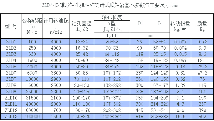 ZLD型圆锥形轴孔弹性柱销联轴器
